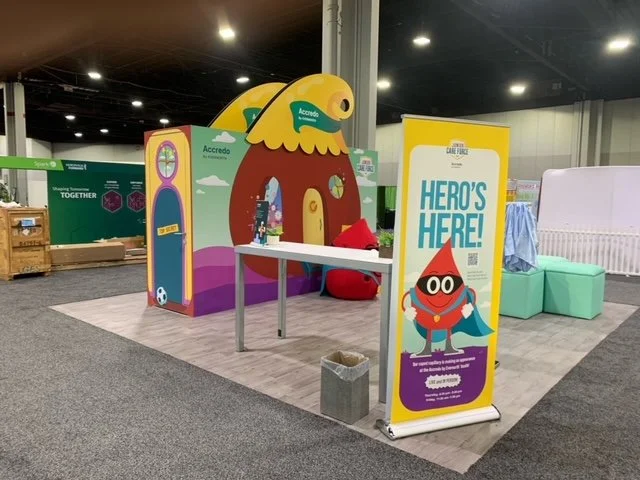 As part of this campaign, we constructed a Junior Care Force experience for the National Bleeding Disorders Federation Conference. We brought Hero to life as our mascot and built his hideaway from our online game to tower above the competition…literally.