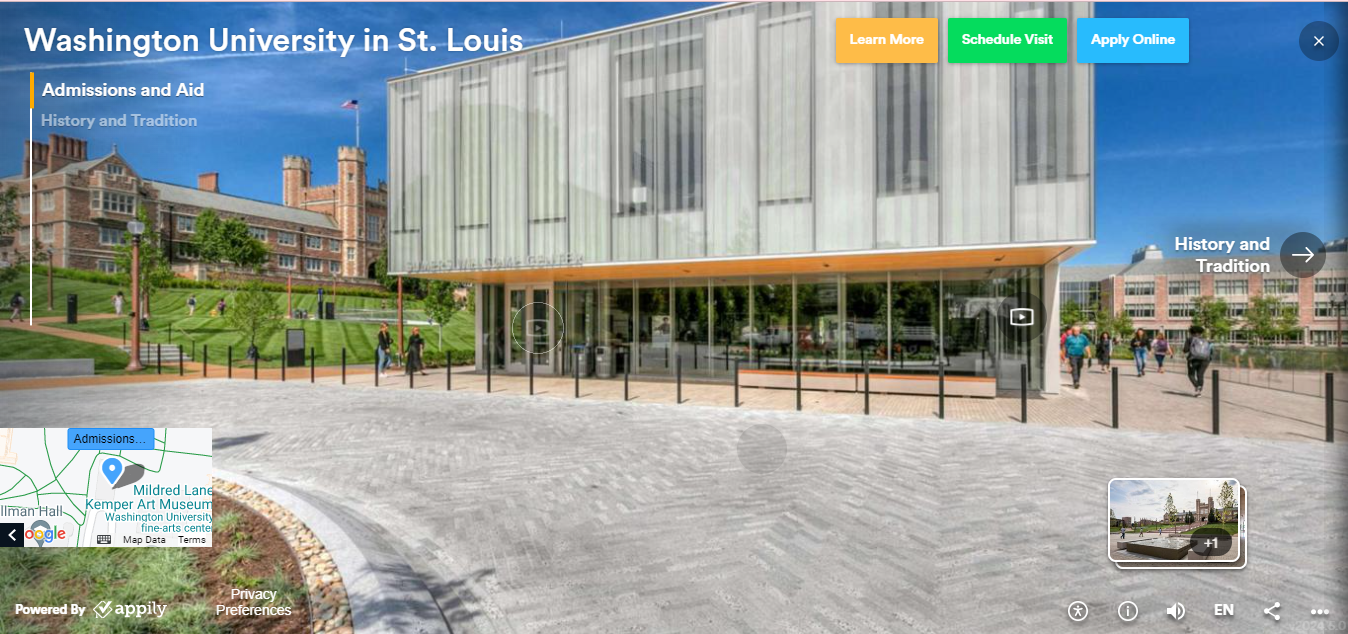 When Washington University, one of the top institutions in the state of Missouri, sought to create a virtual visit for their stunning campus, I helped them develop an impactful experience that was approachable, educational and gave prospective students a personalized experience.